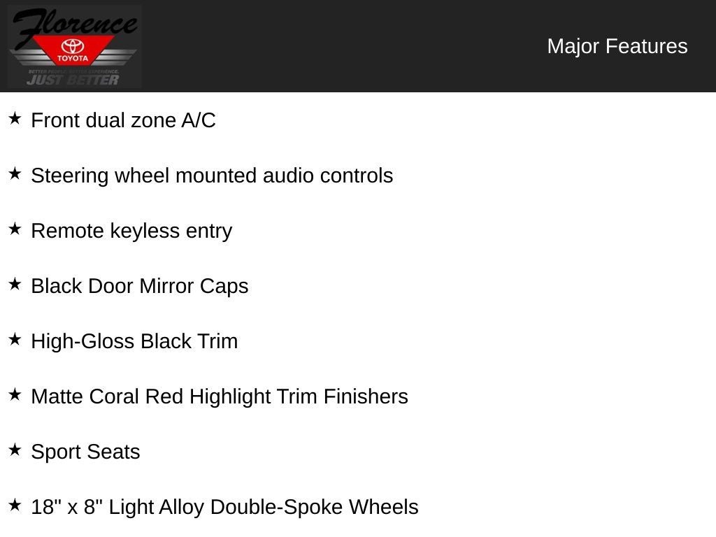 At Florence Toyota come see how our USED CARS are JUST BETTER . We offer the following benefits: Lifetime Power Train (Some exclusions apply), 1st Year Maintenance, $500 Additional Trade In Appraisal, 72 Hour Vehicle Exchange Program, Yearly Vehicle Appraisal & Safety Inspection, VIP Loyalty Program, Routine Express Service, Courtesy Service Shuttle, Express Buying Service. Also, as an added benefit we will buy your vehicle even if you don't buy ours!! Call today (866)830-0793or visit us at www.florencetoyota.com *Customer must trade-in a vehicle to receive $1,000 Trade Assist credit that is included in the online price. **Financing must be provided by a third-party lender using this dealership’s assistance for Customer to receive $1,000 Financing Assist credit that is included in the online price. See dealer for complete details.
