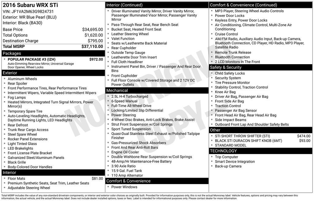 - Performance Design Front Heated Bucket Seats -inc: height adjustable driver's seat, height and tilt adjustable head restraints w/embossed STI logo, front passenger seatback pocket and whiplash protection