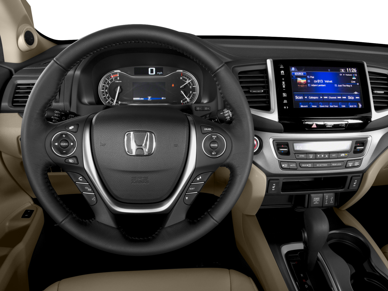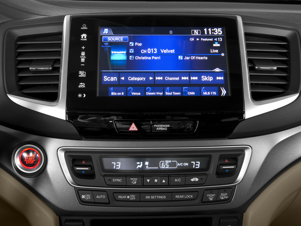 - Radio: AM/FM Audio System -inc: 225-Watt, 7 speakers including subwoofer, Bluetooth® HandsFreeLink, Bluetooth® streaming audio, MP3/auxiliary input jack, MP3/Windows Media Audio (WMA) playback capability, Radio Data System (RDS), Speed-Sensitive Volume Control (SVC), USB audio interface w/1.5-Amp and 2.5-Amp charging ports in front and 2.5-Amp charging port in center console, 8" display audio w/high-resolution WVGA (800x480) electrostatic touch-screen and customizable feature settings, HondaLink, Apple CarPlay, Android Auto, SMS text message function, Pandora compatibility and Song By Voice (SBV)