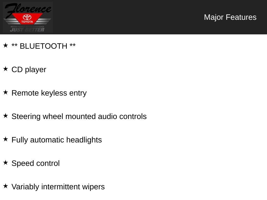 - Radio: AM/FM/CD Audio System -inc: 4 speakers, USB connection port for iPod interface and other compatible devices, auxiliary audio input jack, MP3/WMA CD playback capability, Radio Data System (RDS), speed-sensitive volume control and illuminated steering wheel-mounted audio controls