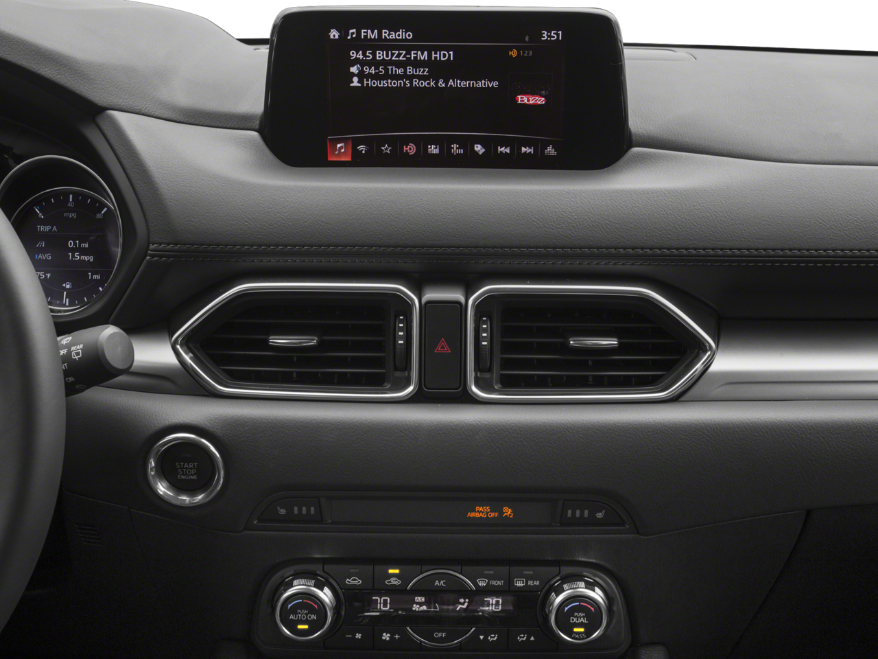 Inside, the leatherette-trimmed seats provide comfort and style, while the Mazda Navigation System and Bose sound system keep you connected and entertained. Dual-zone automatic climate control, a power driver's seat, and a host of other thoughtful amenities ensure a premium driving experience.