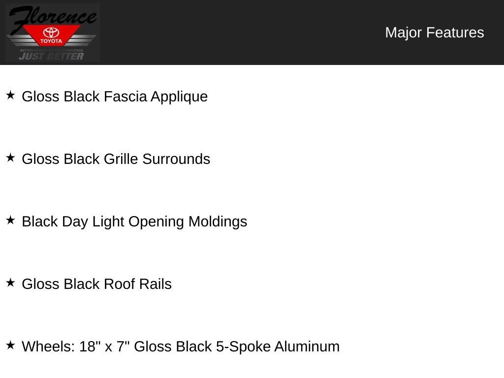 - Wheels: 18" x 7" Gloss Black 5-Spoke Aluminum