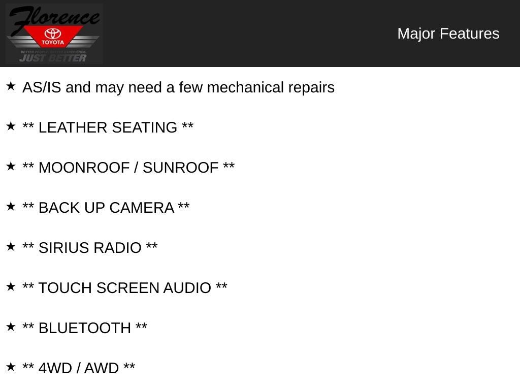 Power Tilt and Slide Moonroof with Sliding Sunshade. Clear Paint Protection - Door Package. Phone Cable and Charge Package. **Equipment listed is based on original vehicle build and subject to change. Please confirm the accuracy of the included equipment by calling the dealer prior to purchase.**