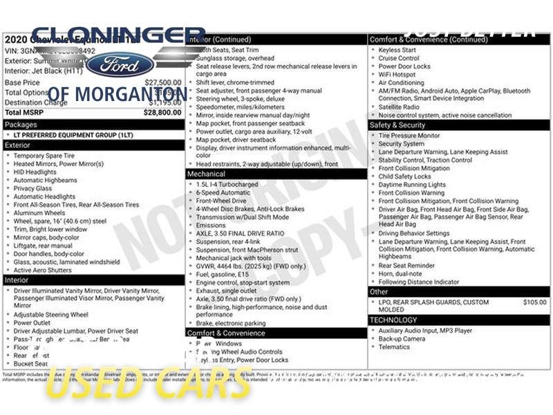 Don't miss your chance to make this Equinox LT your own. Schedule a test drive today and discover the difference that Cloninger Ford of Morganton can make in your car-buying experience.