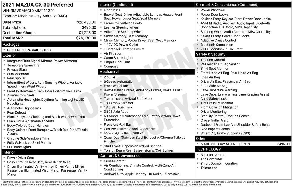 - Vehicle Name: Mazda CX-30