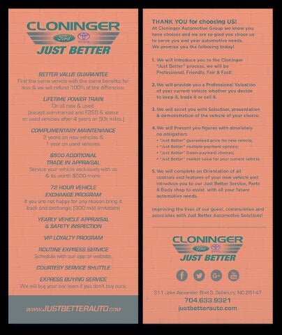 Blue Oval Certification 90-day/4,000 miles limited comprehensive warranty. Blue Oval is Ford Motor Company’s mark of excellence, awarded to dealerships that meet the highest standards for customer satisfaction, sales, and service performance. Certified dealers demonstrate a strong commitment to quality through factory-trained technicians, modern facilities, transparent processes, and a customer-first approach. Blue Oval Certification ensures customers receive a consistently high level of expertise, reliability, and care at every stage of the Ford ownership experience. This vehicle has been looked over from our mechanics to ensure safety and passes NC State Inspection guidelines. In addition, we have performed the following services * 139 Point Inspection *New Cabin Filter *New Engine Air Filter *New Wiper Blades *Alignment *Oil Change *New Diesel Fuel Filter (if applicable) *BG Assurance Package . Vehicles must pass a comprehensive Ford inspection.