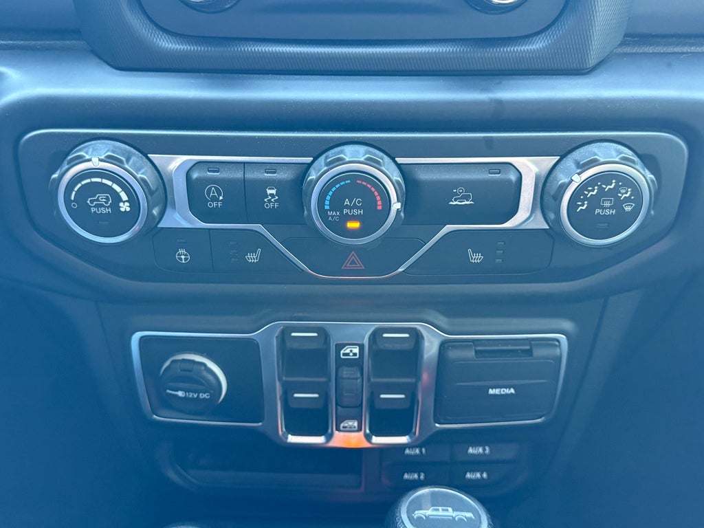 This Jeep Gladiator features a hands-free Bluetooth® phone system. Our dealership has already run the CARFAX report and it is clean. A clean CARFAX is a great asset for resale value in the future. Keep your hands warm all winter with a heated steering wheel in this Jeep Gladiator . Start this unit from inside with remote start. See what's behind you with the back up camera on this model. Quickly unlock the vehicle with keyless entry. It has a V6, 3.6L high output engine. When you encounter slick or muddy roads, you can engage the four wheel drive on this unit and drive with confidence. This 1/2 ton pickup projects refinement with a racy metallic gray exterior. The Electronic Stability Control will keep you on your intended path. It has an automatic transmission. This Jeep Gladiator has fog lights for all weather conditions. Anti-lock brakes are standard on this model.