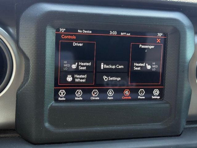 4-Wheel Drive Swing Gate Decal, 7.0 Touchscreen Display, 97 MPH Vehicle Max Speed Calibration, Air Conditioning, Air Conditioning w/Auto Temperature Control, Air Filtering, Anti-Spin Differential Rear Axle, Apple CarPlay, Automatic Headlamps, Black Grille, Black Trail Rated Badge, Cluster 7.0 TFT Color Display, Cold Weather Group, Convenience Group, Deep Tint Sunscreen Windows, Front 1-Touch Down Power Windows, Front LED Fog Lamps, Google Android Auto, GPS Antenna Input, Heated Front Seats, Heated Steering Wheel, Integrated Center Stack Radio, Leather Wrapped Steering Wheel, LED Headlamp & Fog Lamp Group, LED Premium Reflector Headlamps, Matte Black Jeep Badge, Mold In Color Bumper w/Gloss Black, MOPAR All-Weather Floor Mats, Power Heated Mirrors, Quick Order Package 22W Willys, Radio: Uconnect 4 w/7 Display, Remote Keyless Entry, Security Alarm, SiriusXM Satellite Radio, Speed Sensitive Power Locks, Sun Visors w/Illuminated Vanity Mirrors, Technology Group, Universal Garage Door Opener, USB Host Flip, Wheels: 17 x 7.5 Moab Black Aluminum, Willys, Willys Hood Decal, Wrangler Decal.