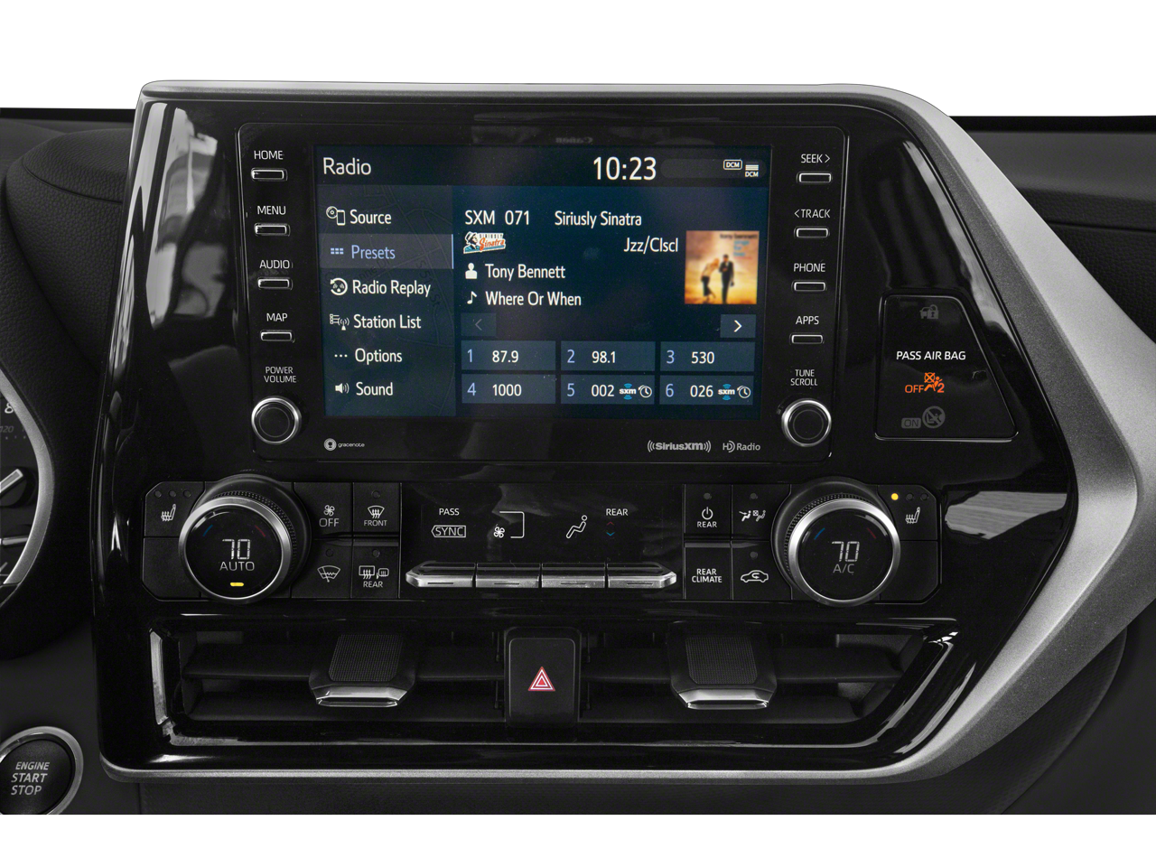 - Radio: Audio Plus -inc: 6 speakers, 8" touch-screen, HD Radio, USB media port, hands-free phone capability, advanced voice recognition and music streaming via Bluetooth wireless technology, Android Auto, Apple CarPlay and Amazon Alexa compatible, SiriusXM w/3-month All Access trial, Connected Services - Safety Connect w/1-year trial, Service Connect w/10-year trial, Remote Connect w/1-year trial and Wi-Fi Connect w/up to 2GB within 3-month trial, See Toyota.com/audio-multimedia for details