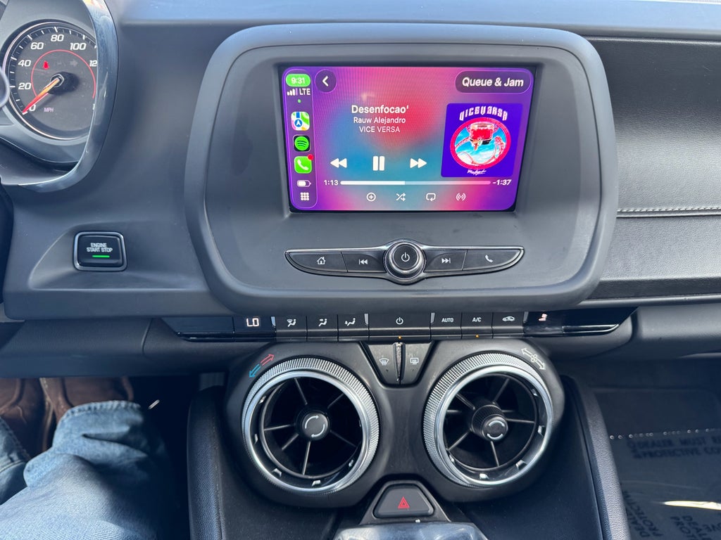 Preferred Equipment Group LT1, RS Package (Dark Tint LED Tail Lamps and Decklid-Mounted Lip Spoiler), 2.77 Rear Axle Ratio, 4-Wheel Disc Brakes, 6 Speakers, 6-Speaker Audio System Feature, 6-Way Power Front Passenger Seat Adjuster, 8-Way Power Driver Seat Adjuster, ABS brakes, Air Conditioning, Alloy wheels, AM/FM radio: SiriusXM, Apple CarPlay/Android Auto, Automatic temperature control, Bluetooth® For Phone, Brake assist, Bumpers: body-color, Cloth Seat Trim, Compass, Delay-off headlights, Driver door bin, Driver vanity mirror, Dual front impact airbags, Dual front side impact airbags, Electronic Stability Control, Exterior Parking Camera Rear, Four wheel independent suspension, Front anti-roll bar, Front Bucket Seats, Front Center Armrest, Front License Plate Bracket, Front reading lights, Front Sport Bucket Seats, Fully automatic headlights, Illuminated entry, Knee airbag, Leather Shift Knob, Low tire pressure warning, Occupant sensing airbag, Overhead airbag, Paddle-Shift Manual Controls, Panic alarm, Passenger door bin, Passenger vanity mirror, Power door mirrors, Power driver seat, Power passenger seat, Power steering, Power windows, Premium audio system: Chevrolet Infotainment System, Radio data system, Radio: Chevrolet Infotainment 3 Plus System, Radio: Chevrolet Infotainment 3 System, Rear anti-roll bar, Rear window defroster, Remote keyless entry, Remote Vehicle Starter System, Security system, SiriusXM Radio, SiriusXM w/360L, Speed control, Speed-sensing steering, Steering wheel mounted audio controls, Tachometer, Telescoping steering wheel, Tilt steering wheel, Traction control, Trip computer, Variably intermittent wipers, Voltmeter, and Wheels: 20 Silver-Painted Aluminum.