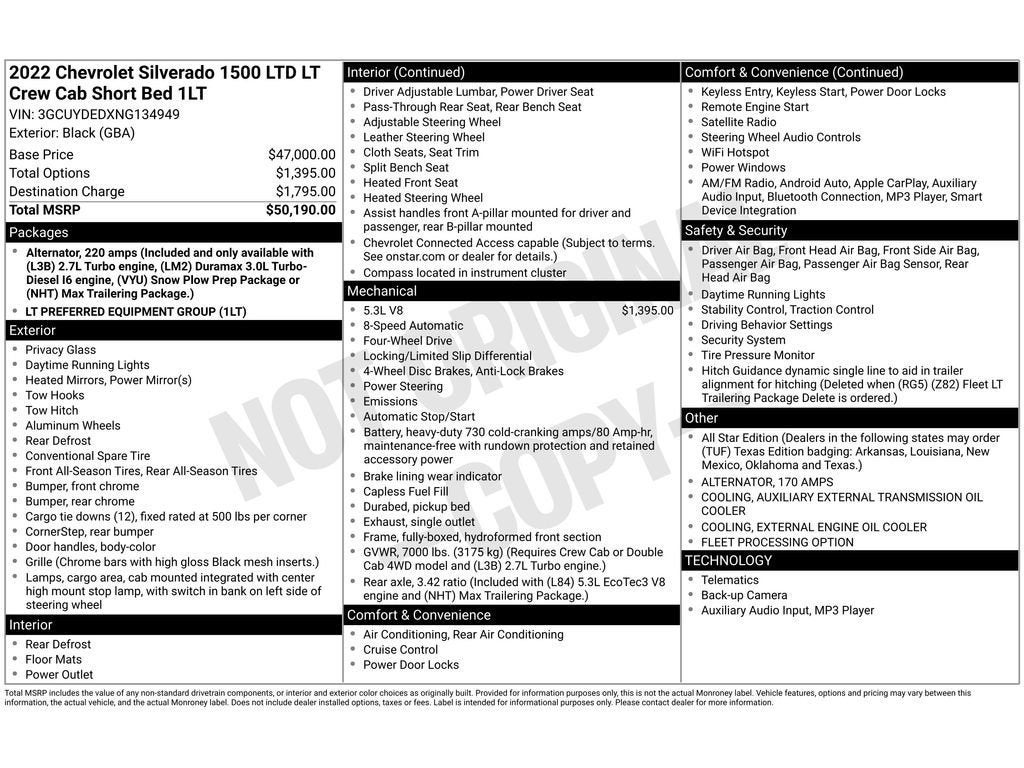 Half ton trucks are the most functional trucks for all purposes. This unit has a clean CARFAX vehicle history report. This model keeps you comfortable with Auto Climate. The Chevrolet Silverado offers Android Auto for seamless smartphone integration. Apple CarPlay: Seamless smartphone integration for the vehicle - stay connected and entertained on the go! This 2022 Chevrolet Silverado 1500 has four wheel drive capabilities. See what's behind you with the back up camera on the Chevrolet Silverado. Electronic Stability Control is one of many advanced safety features on the vehicle. Bluetooth® technology is built into this 2022 Chevrolet Silverado 1500, keeping your hands on the steering wheel and your focus on the road. Keep your hands warm all winter with a heated steering wheel in this unit . Start this 2022 Chevrolet Silverado 1500 from inside with remote start. This 2022 Chevrolet Silverado 1500 features steering wheel audio controls. This unit is outfitted with an OnStar communication system.