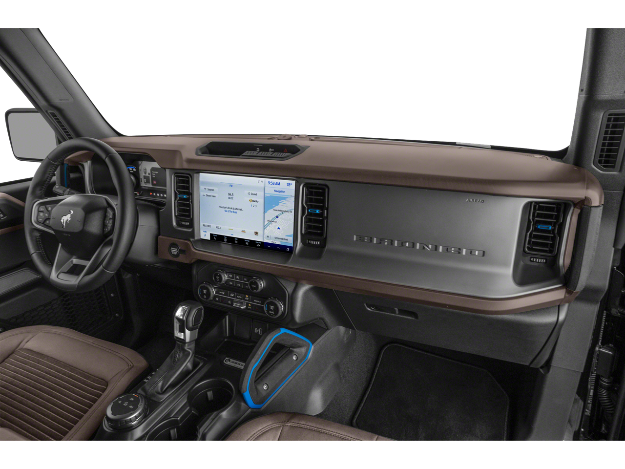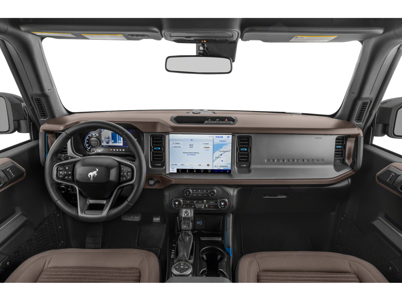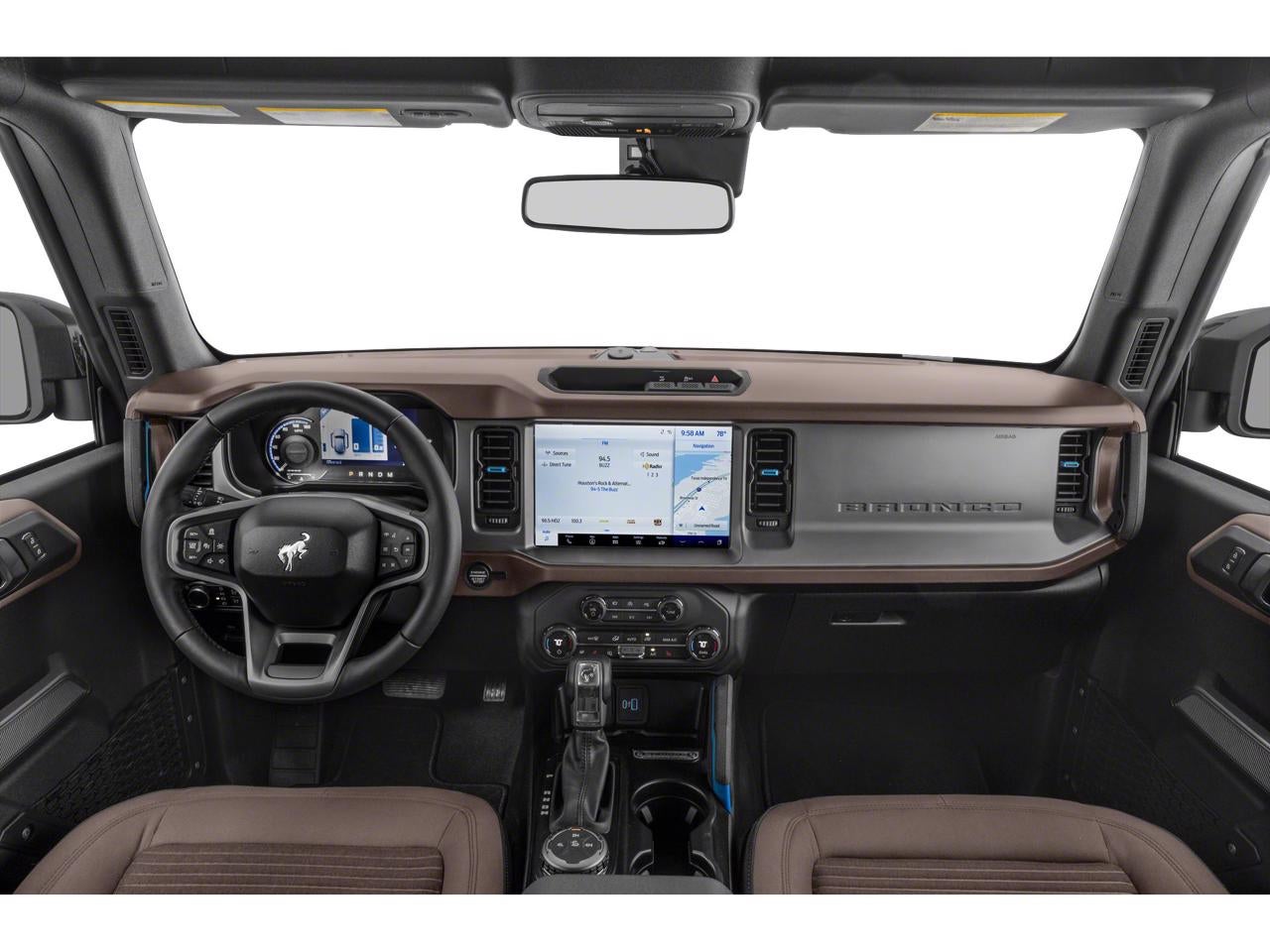 Inside, enjoy a tech-forward cabin designed for convenience and connectivity. Automatic Climate Control keeps the interior comfortable in any weather, while Hands-Free Bluetooth® and Apple CarPlay make staying connected and entertained effortless. Built-in Navigation ensures you find your way on long trips or remote routes. The Ford Bronco's comfortable seating and thoughtfully arranged controls provide a pleasant driving experience for daily commutes and weekend adventures.