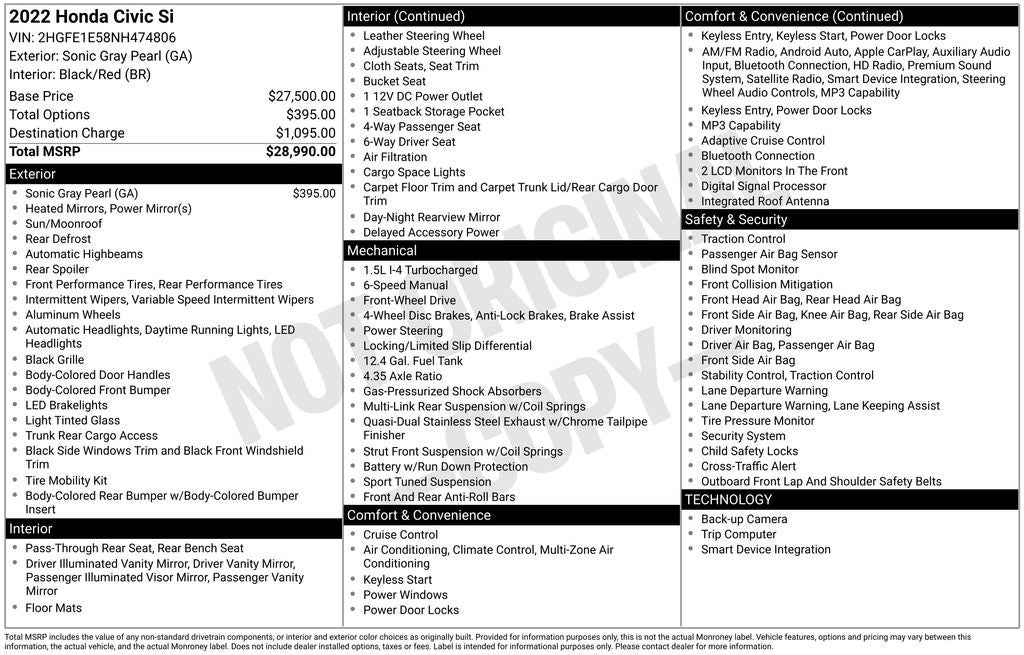 At Honda of Salisbury come see how we are your JUST BETTER dealership. Better People, Better Experience!!! We offer the following benefits: Better Value Guarantee, Lifetime Power Train (Some exclusions apply), $500 Additional Trade in Appraisal, 72 Hour Vehicle Exchange Program, Yearly Vehicle Appraisal & Safety Inspection, VIP Loyalty Program, Routine Express Service, Courtesy Service Shuttle, Express Buying Service. Also, as an added benefit we will buy your vehicle even if you don't buy ours!! One Year Appearance Package $999 Not Included In Sales Price *PAINT PROTECTION Protects against fading, weather induced cracking or peeling, oxidation or loss of gloss. *FABRIC PROTECTION Protects against any normal oil-or water-based spills on the fabric. *VINYL & LEATHER PROTECTION Protects against fading and permanent staining caused by food or drink.