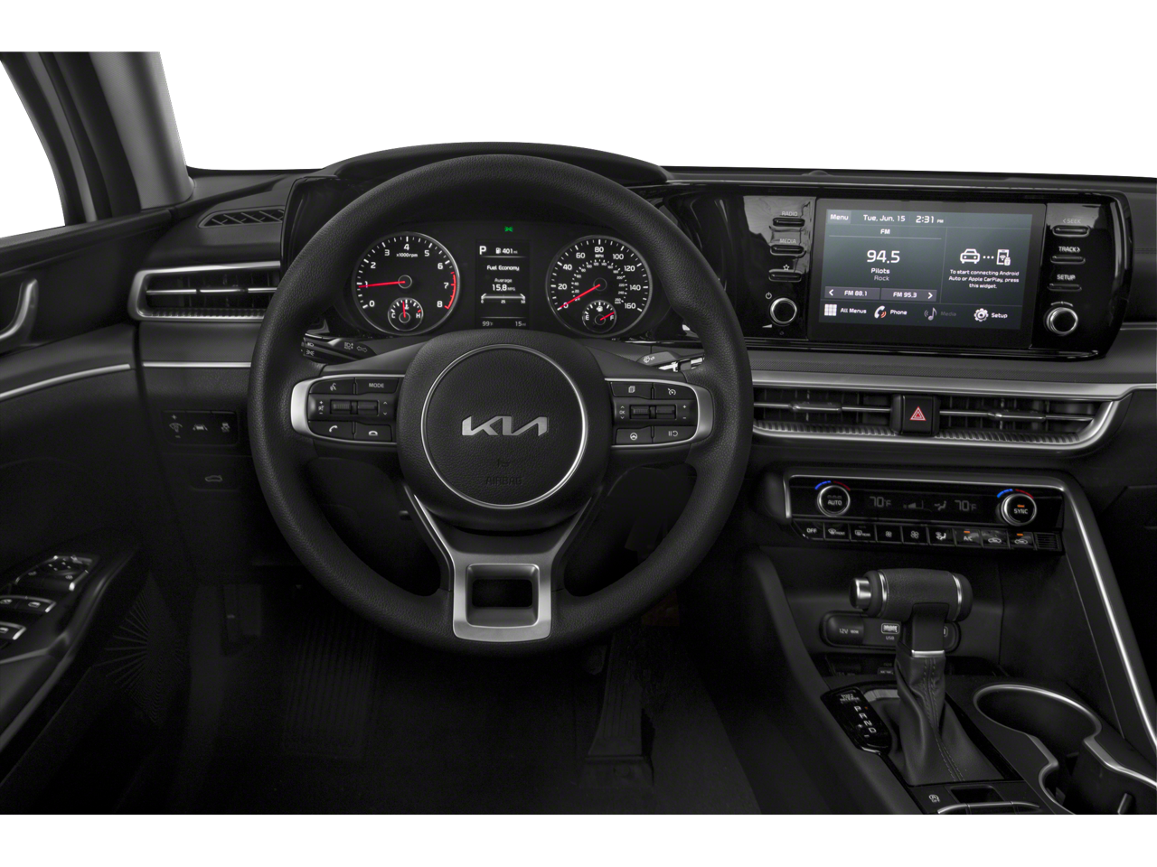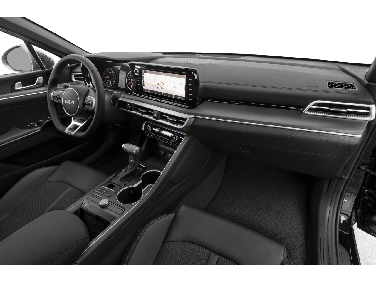 Mid-sized cars are the perfect size. This unit is equipped with all wheel drive. The vehicle comes equipped with Android Auto for seamless smartphone integration on the road. Apple CarPlay: Seamless smartphone integration for it - stay connected and entertained on the go! It keeps you comfortable with Auto Climate. The high efficiency automatic transmission shifts smoothly and allows you to relax while driving. Protect this 2022 Kia K5 from unwanted accidents with a cutting edge backup camera system. Our dealership has already run the CARFAX report and it is clean. A clean CARFAX is a great asset for resale value in the future. Maintaining a stable interior temperature in it is easy with the climate control system. This vehicle utilizes collision avoidance to enhance safety by automatically detecting and evading potential accidents. Easily set your speed in this mid-size car with a state of the art cruise control system. Increase or decrease velocity with the touch of a button. The Electronic Stability Control will keep you on your intended path. The Kia K5 has a 4 Cyl, 1.6L high output engine. It has fog lights for all weather conditions. Enjoy the tried and true gasoline engine in this mid-size car. The Kia K5 features a hands-free Bluetooth® phone system. Control your garage door with its built in HomeLink System. The Kia K5's Lane Departure Warning helps keep you in your lane. The leather seats in this Kia K5 are a must for buyers looking for comfort, durability, and style. Help alleviate lower back pain with the driver seat lumbar support in this vehicle. You'll never again be lost in a crowded city or a country region with the navigation system on the Kia K5. Never get into a cold vehicle again with the remote start feature on the Kia K5. This vehicle shines with clean polished lines coated with an elegant white finish.