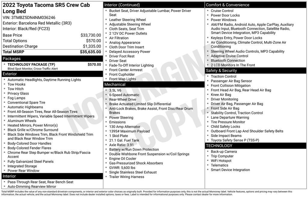 - Vehicle Name: Toyota Tacoma 2WD