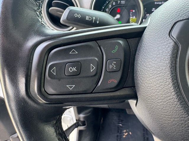 Cold Weather Group (Remote Start System), Convenience Group (Universal Garage Door Opener), Quick Order Package 29W Willys (4xe 4-Wheel Drive Swing Gate Decal, 97 MPH Vehicle Max Speed Calibration, Anti-Spin Differential Rear Axle, Black Grille, Front LED Fog Lamps, LED Headlamp & Fog Lamp Group, LED Premium Reflector Headlamps, Molded-In-Color Fender Flares (2-Piece), MOPAR All-Weather Floor Mats, Normal Duty Suspension, Wheels: 17 x 7.5 Black Aluminum, Willys, and Willys 4xe Hood Decal), Blue Advantage Certified Certified, 2.0L I4 DOHC, 3.73 Rear Axle Ratio, 4-Wheel Disc Brakes, 4G LTE Wi-Fi Hot Spot, 9 Speakers, ABS brakes, Air Conditioning, Alloy wheels, AM/FM radio: SiriusXM, Apple CarPlay, Apple CarPlay/Android Auto, Automatic temperature control, Body Color 3-Piece Hard Top, Brake assist, Cloth Low-Back Bucket Seats, Compass, Delay-off headlights, Driver door bin, Driver vanity mirror, Dual front impact airbags, Dual front side impact airbags, Electronic Stability Control, Emergency communication system: SiriusXM Guardian, Front anti-roll bar, Front Bucket Seats, Front Center Armrest w/Storage, Front dual zone A/C, Front fog lights, Front License Plate Bracket, Front reading lights, Fully automatic headlights, Google Android Auto, GPS Antenna Input, Heated door mirrors, Illuminated entry, Integrated Center Stack Radio, Integrated roll-over protection, Integrated Voice Command w/Bluetooth®, Low tire pressure warning, Occupant sensing airbag, Outside temperature display, Panic alarm, ParkView Rear Back-Up Camera, Passenger door bin, Passenger vanity mirror, Power door mirrors, Power steering, Power windows, Radio data system, Radio: Uconnect 4 w/7 Display, Radio: Uconnect 4C Nav w/8.4 Display, Rear anti-roll bar, Rear reading lights, Remote keyless entry, Security system, Speed control, Split folding rear seat, Steering wheel mounted audio c