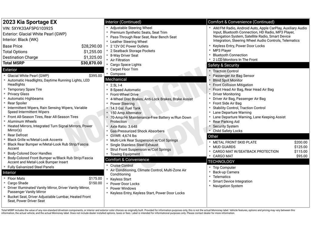 Metal Front Skid Plate Cargo Cover Mud Guards Cargo Mat with Seatback Protection **Equipment listed is based on original vehicle build and subject to change. Please confirm the accuracy of the included equipment by calling the dealer prior to purchase.**