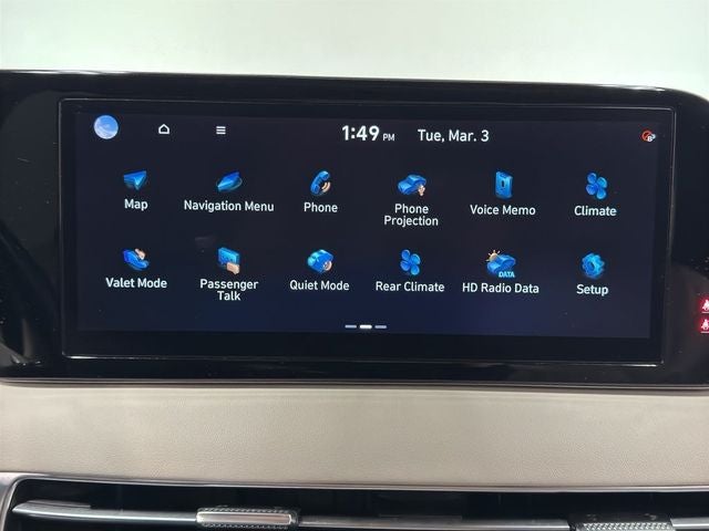 - Radio: AM/FM/MP3 Premium Audio System -inc: 630-Watts, Harman Kardon audio system w/12-speakers, Quantum Logic Surround, Clari-Fi, 12.3" color touchscreen display, onboard navigation w/traffic flow including incident data via HD Radio (HERE), Over-the-Air (OTA) map updates, SiriusXM, Android Auto and Apple CarPlay, USB, dynamic voice recognition, rear seat quiet mode, passenger talk (in-car intercom), Bluetooth hands-free connectivity w/multiple device connection and Bluelink Connected Car System