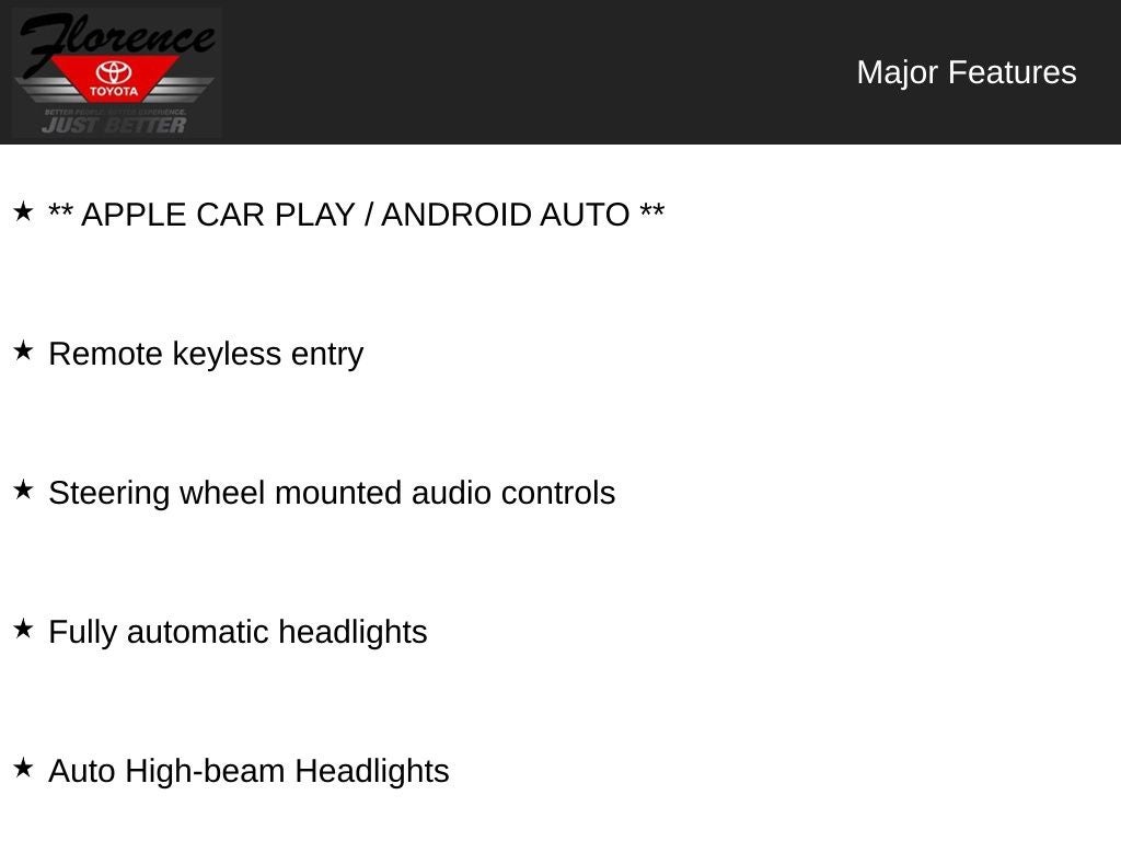 - Radio: AM/FM w/RDS/MP3/Aux-In -inc: 4 speakers, 7" color touchscreen display, streaming audio via Bluetooth®, Bluetooth® hands-free phone system, hands-free text messaging assistant, Siri Eyes Free, Google Assistant voice recognition w/Apple CarPlay and Android Auto and (1) front USB connection port (type A)