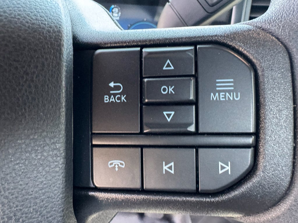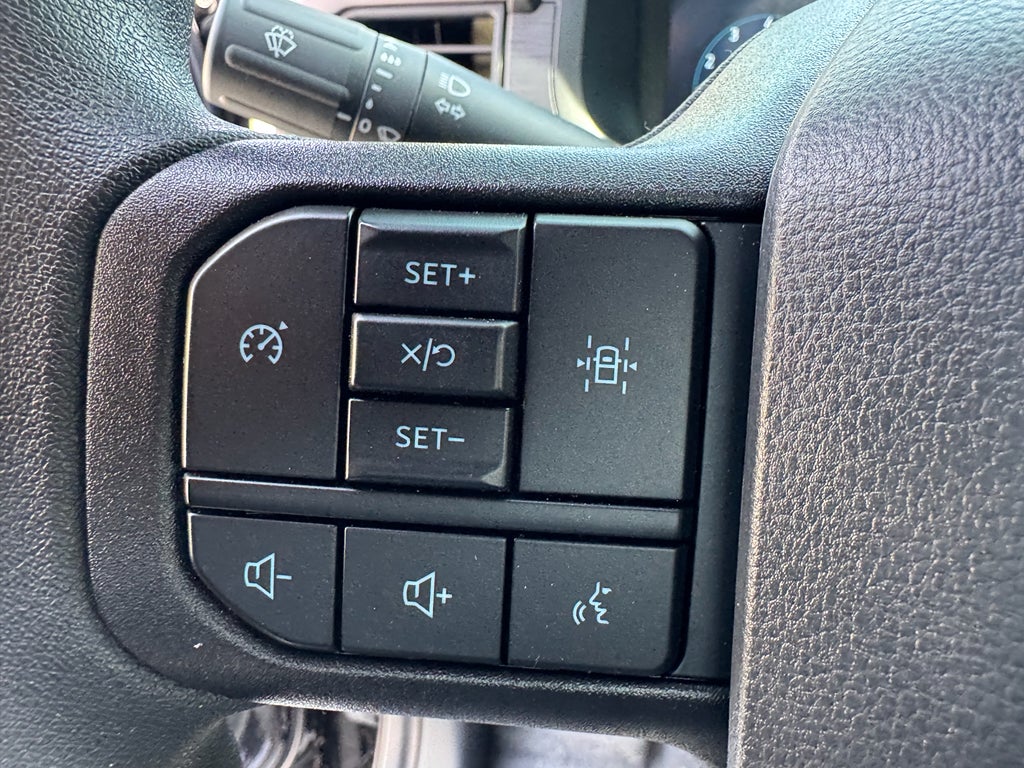 Equipment Group 101A Standard, 4 Speakers, 4-Wheel Disc Brakes, ABS brakes, Air Conditioning, AM/FM radio: SiriusXM with 360L, Auto High-beam Headlights, Brake assist, Cloth 40/20/40 Front Seat, Compass, Delay-off headlights, Driver door bin, Dual front impact airbags, Dual front side impact airbags, Electronic Locking w/3.73 Axle Ratio, Electronic Stability Control, Emergency communication system: SYNC 4 911 Assist, Front anti-roll bar, Front Center Armrest, Front reading lights, Front wheel independent suspension, Fully automatic headlights, Heated door mirrors, Illuminated entry, Internet access capable: FordPass Connect 5G, Low tire pressure warning, Occupant sensing airbag, Outside temperature display, Overhead airbag, Overhead console, Panic alarm, Passenger door bin, Passenger vanity mirror, Power door mirrors, Power steering, Power windows, Radio data system, Radio: AM/FM Stereo w/SiriusXM 360L, Rear Parking Sensors, Rear step bumper, Rear Window Fixed Privacy Glass w/Defroster, Remote keyless entry, Security system, Speed control, Steering wheel mounted audio controls, SYNC 4 w/Enhanced Voice Recognition, Tachometer, Tailgate Step w/Work Surface, Telescoping steering wheel, Tilt steering wheel, Traction control, Trip computer, Variably intermittent wipers, Voltmeter, and Wheels: 17 Silver Steel.