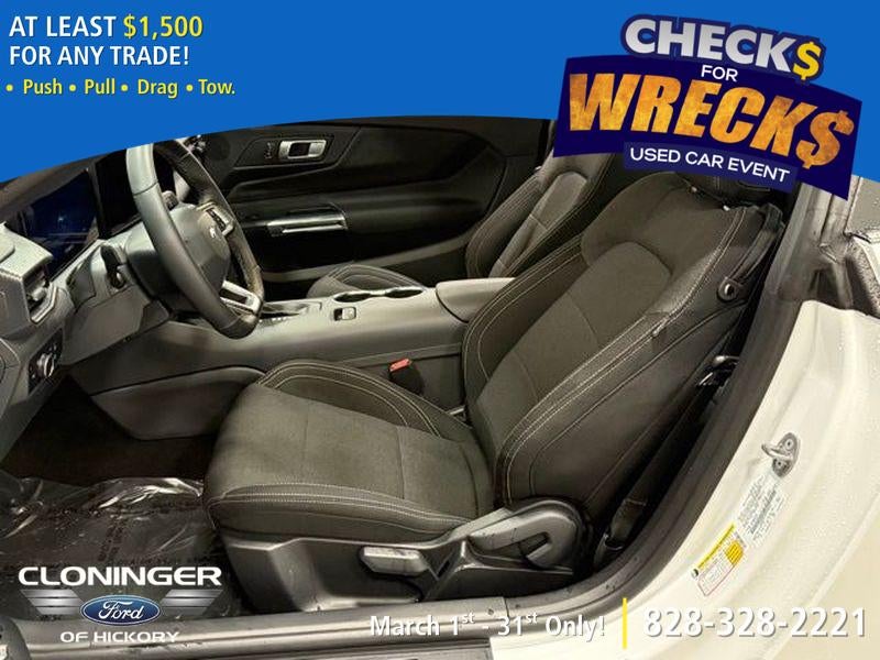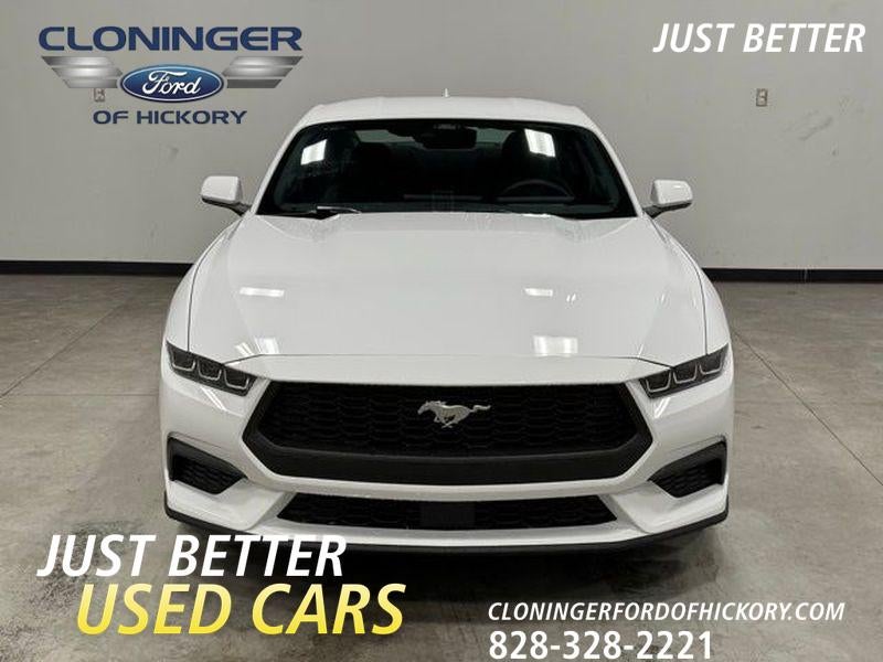 2025 Ford Mustang EcoBoost — pristine condition with just 0 miles and low mileage, now available in Hickory, NC. This RWD coupe pairs a turbocharged 2.3L 4-cylinder gasoline engine with a responsive automatic transmission, delivering spirited performance, strong fuel efficiency, and the iconic Ford Mustang driving experience. Meticulously maintained and unused, the zero-mile odometer means you're getting a like-new vehicle without the new-car markup. This Ford Mustang EcoBoost comes equipped with modern convenience and safety features including a Back-Up Camera, Rear Parking Sensors, and Cross-Traffic Alert to make parking and lane changes easier and safer. Stay connected on the road with Android Auto and Apple CarPlay integration, offering seamless access to navigation, music, and hands-free calling from your smartphone. Offered at the best price in the area, this vehicle presents exceptional value for buyers seeking performance, technology, and style at a competitive cost. Whether you want a daily driver with athletic character or a weekend cruiser, the Ford Mustang's balanced chassis and potent 2.3L engine deliver engaging dynamics and confidence behind the wheel. Located in Hickory, NC, this Ford Mustang is ready for immediate viewing and test drives. With low mileage and a top value proposition, it won't last long—contact us to schedule a visit and secure the best-priced 2025 Ford Mustang EcoBoost in the region.